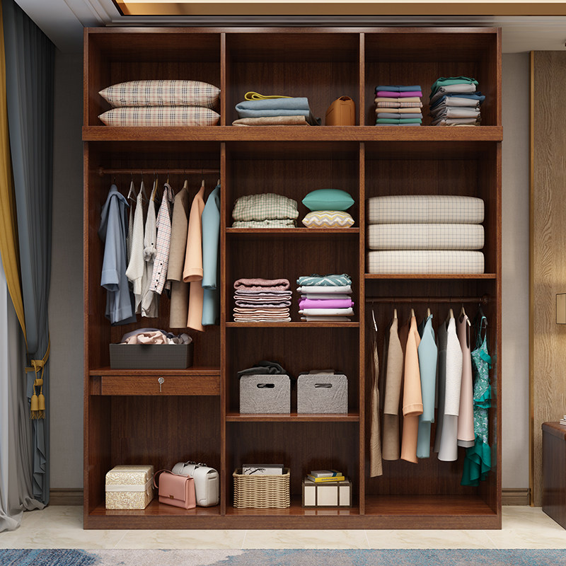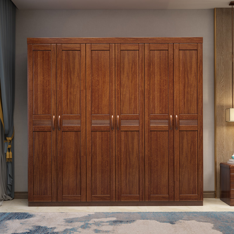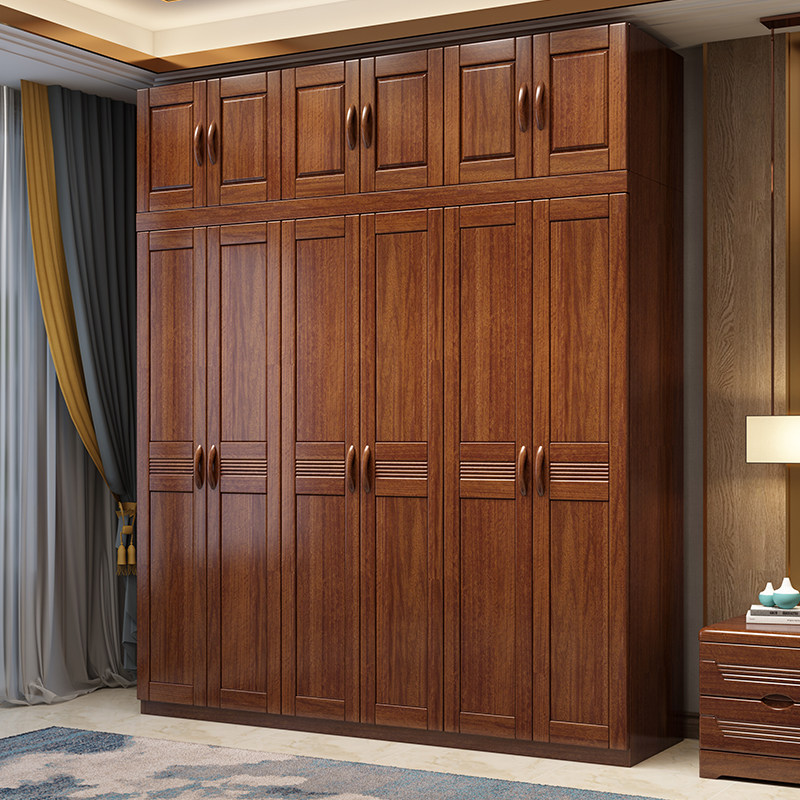 Walnut wardrobe Household bedroom wardrobe Solid wood combination 3 doors 4 doors plus top storage cabinet Modern simple wooden cabinet