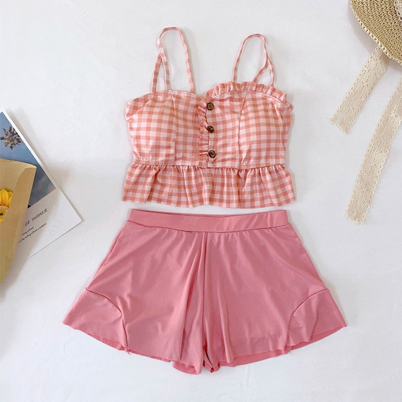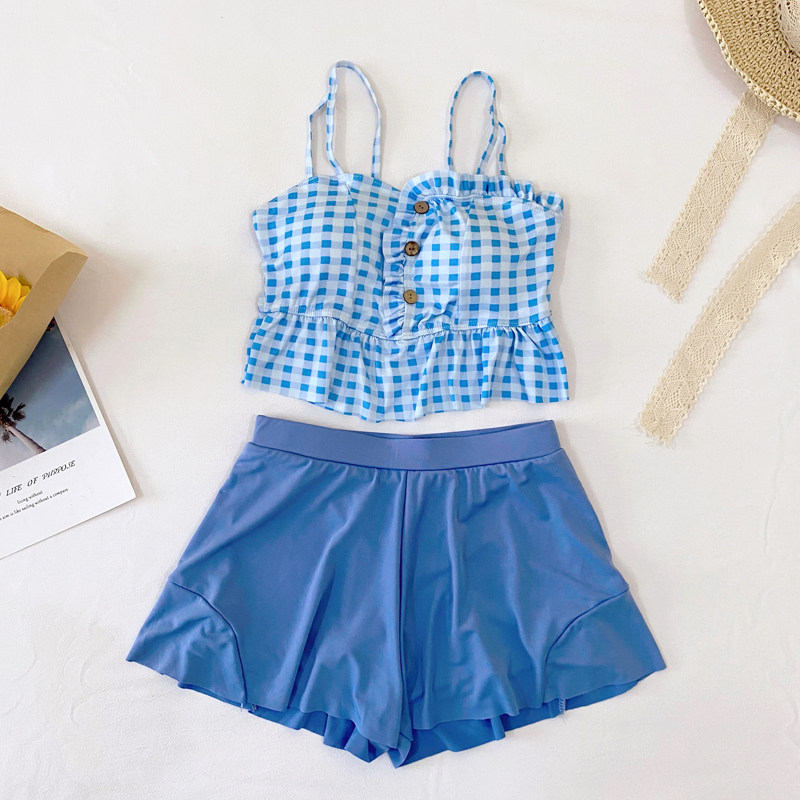 Sweet Swimsuit Woman Cute Teenage Girl Conservative Students Ins Two Style Four-corner Pants Slim Fit Slim Sub Spa Swimsuit