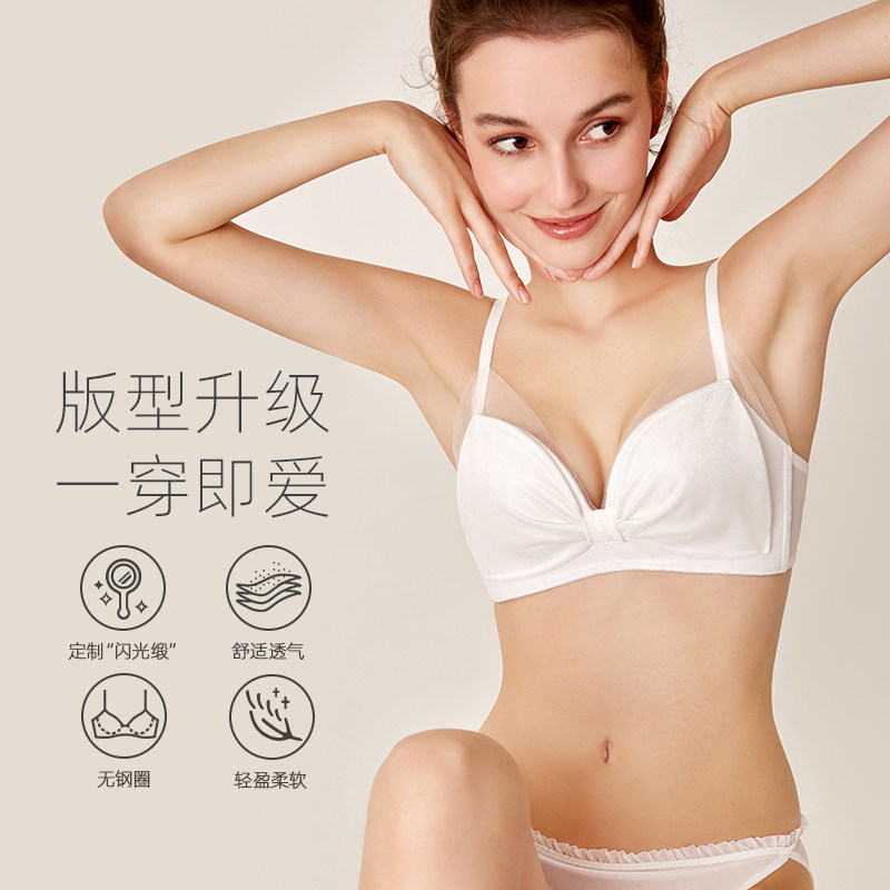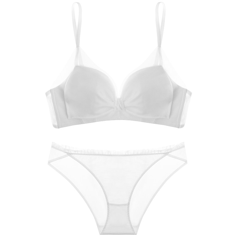 Curious Miss small breasts gather ladies underwear women white deep V sweet no underwire girl bra set pure desire