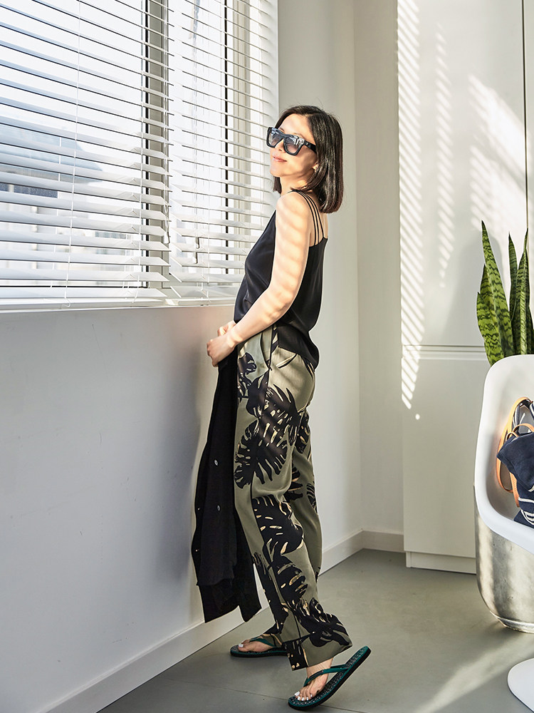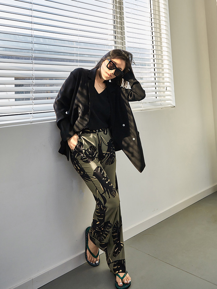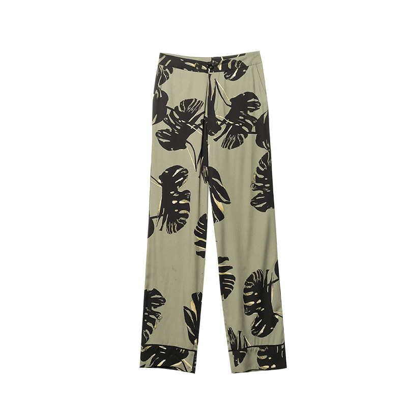 Tangtang 2004 summer new women's casual vacation style straight-leg pants 22 mommy silk print wide-leg pants women