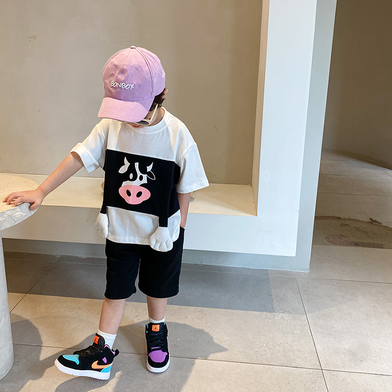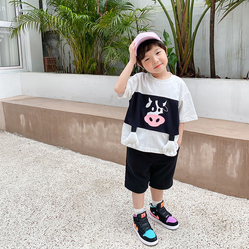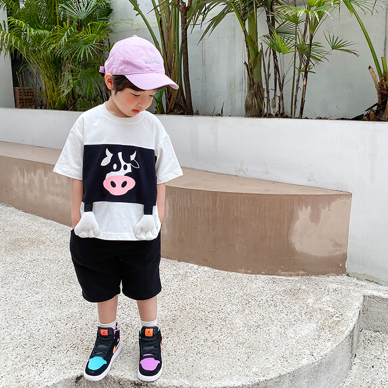 Blue Dad Children's Clothing Children's T-shirt Boys Summer Clothes 2021 Loose Short Sleeve Shirts Western Style Baby Spring Clothing Trend