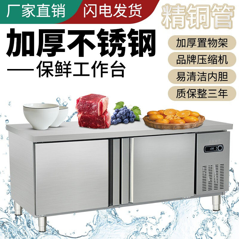 Stainless steel horizontal refrigerated workbench dual temperature kitchen freezer commercial freezer freezer fresh-keeping operation table refrigerated cabinet