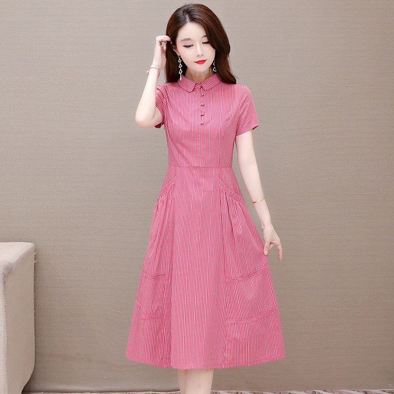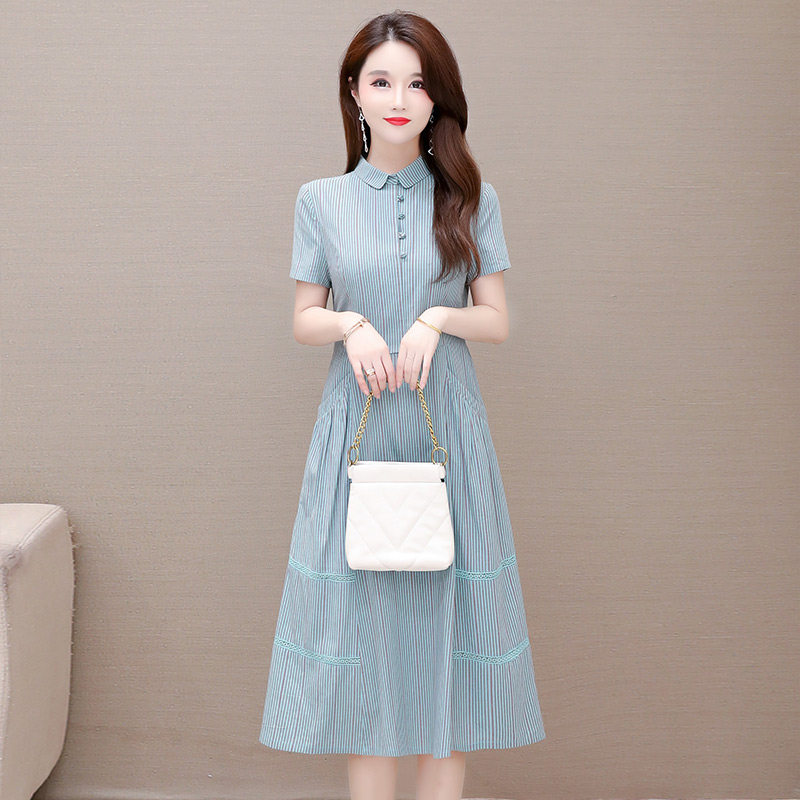 Plaid dress women's 2021 summer new Korean version of the Western style age-reducing doll collar cover the belly and show thin large size skirt