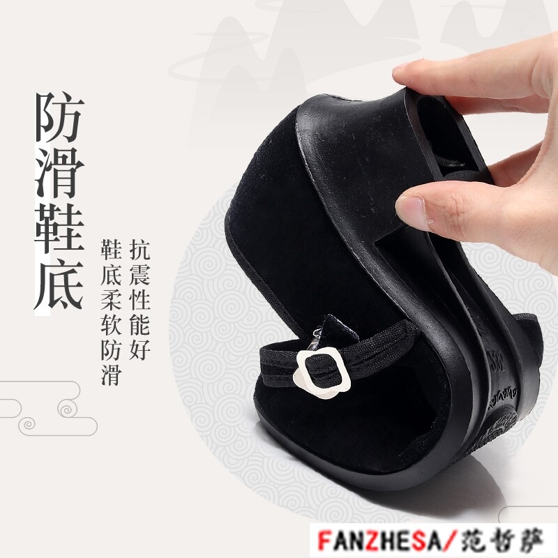 Ethnic Dance Shoe Gum State Rice Seedling Song Shoes Female High Heel New Test Class Black Cloth Dance Heel shoes Female folk with heel-Taobao