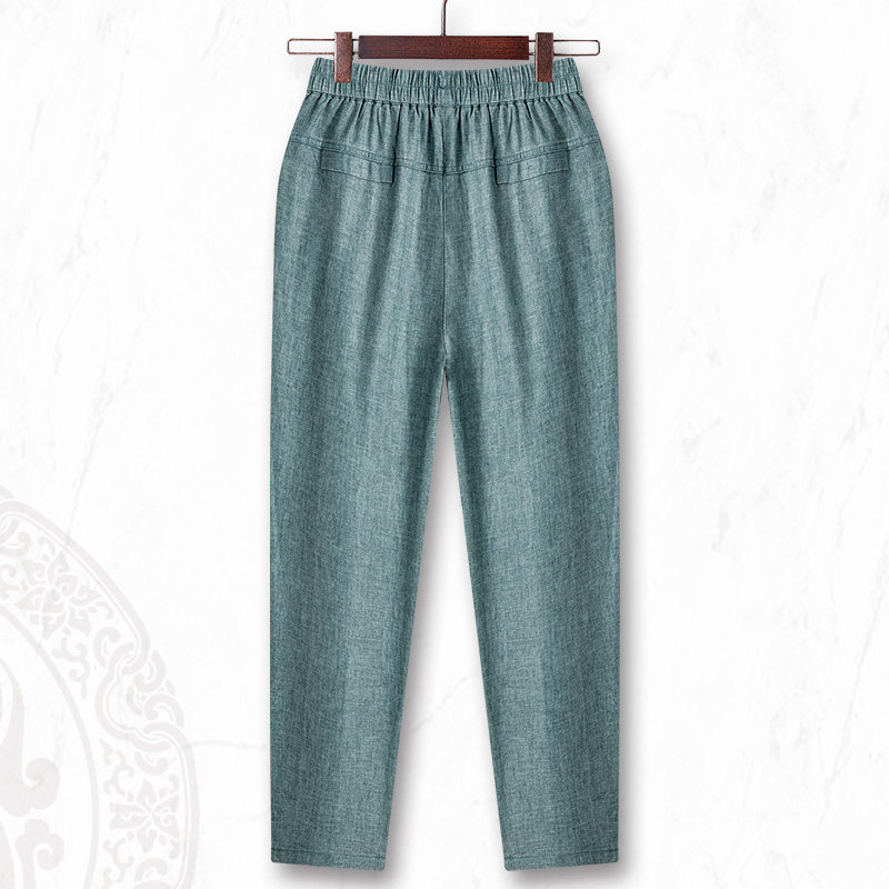 Linen Pants Children Summer Loose Thin middle aged women pants tightness high waist Mom Roof pants Harun pants cotton linen