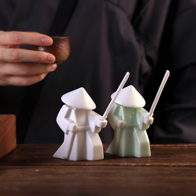 Man-in-the-art-green-coloured one-man-in-the-white-one-man-in-the-white-coloured one wooden planks with a small horn-line sandalwood 11CM long 1 tube for about 50