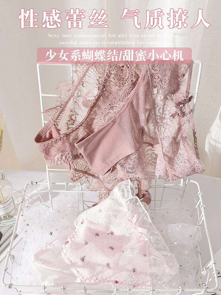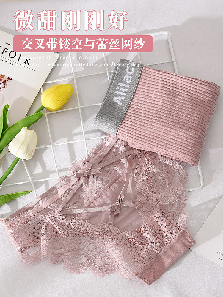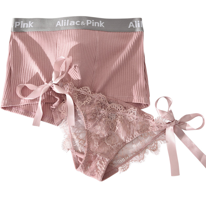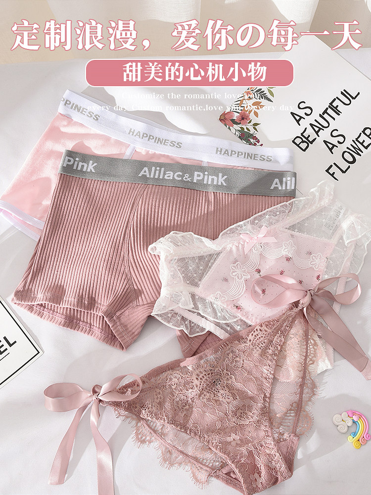 Lace Briefs lovers suit double a pair of sexy hollowed-out ladies triangle pants pink men's four-corner pants