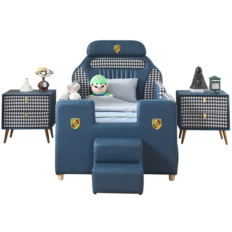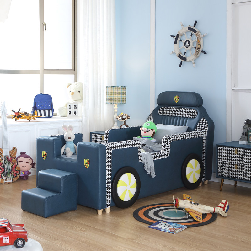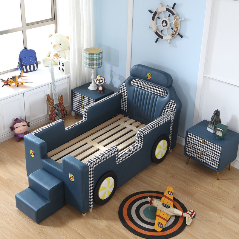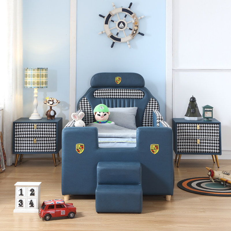 Island children's car bed boy girl baby single child bed with guardrail cartoon sports car widening stitching small bed