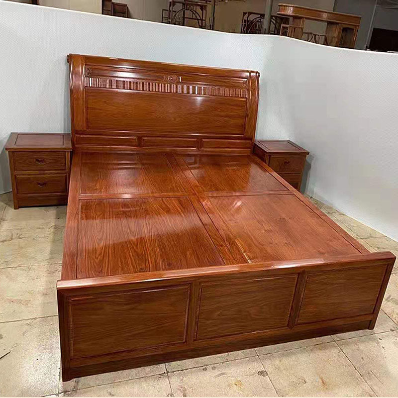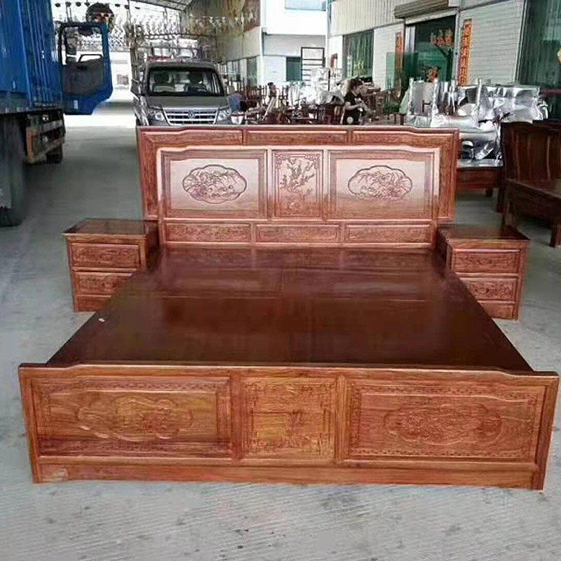 Mahogany furniture plain rich big bed Chinese-style classical rosewood solid wood carved double bed hedgehog red sandalwood wedding bed