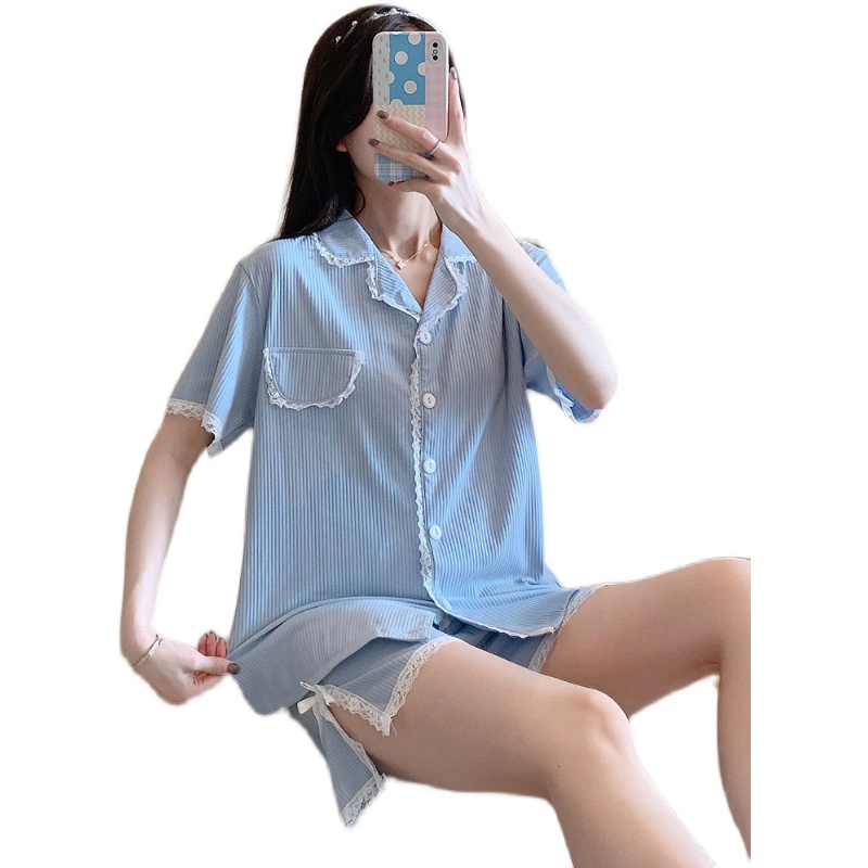 Sandro Vicari pure cotton pyjamas woman thin short sleeve cute princess lace floral lace home suit summer