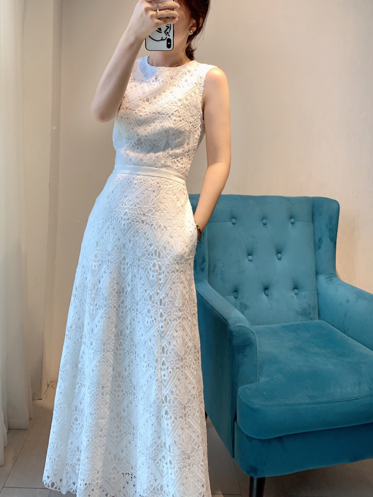 2023 Summer New Tea Me French Retro Light Middle Festival High - end Blue Lace Dress Dress Dress