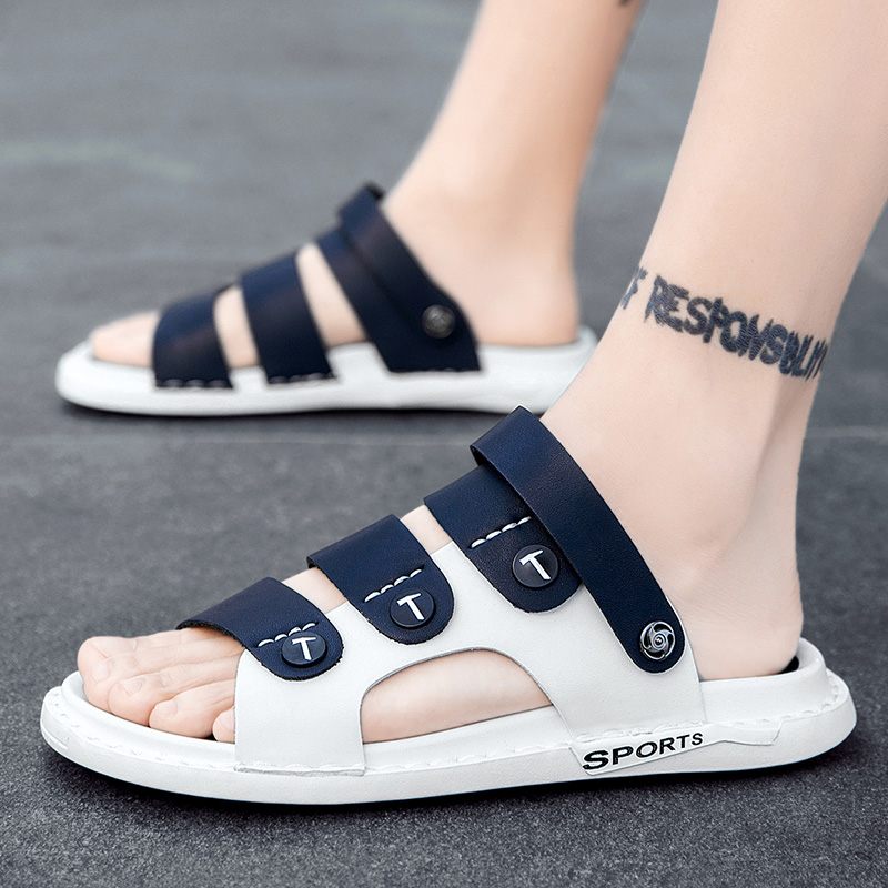 Boomer sandals men 2022 new genuine leather casual beach shoes trendy summer outwear for dual purpose driving cool slippers