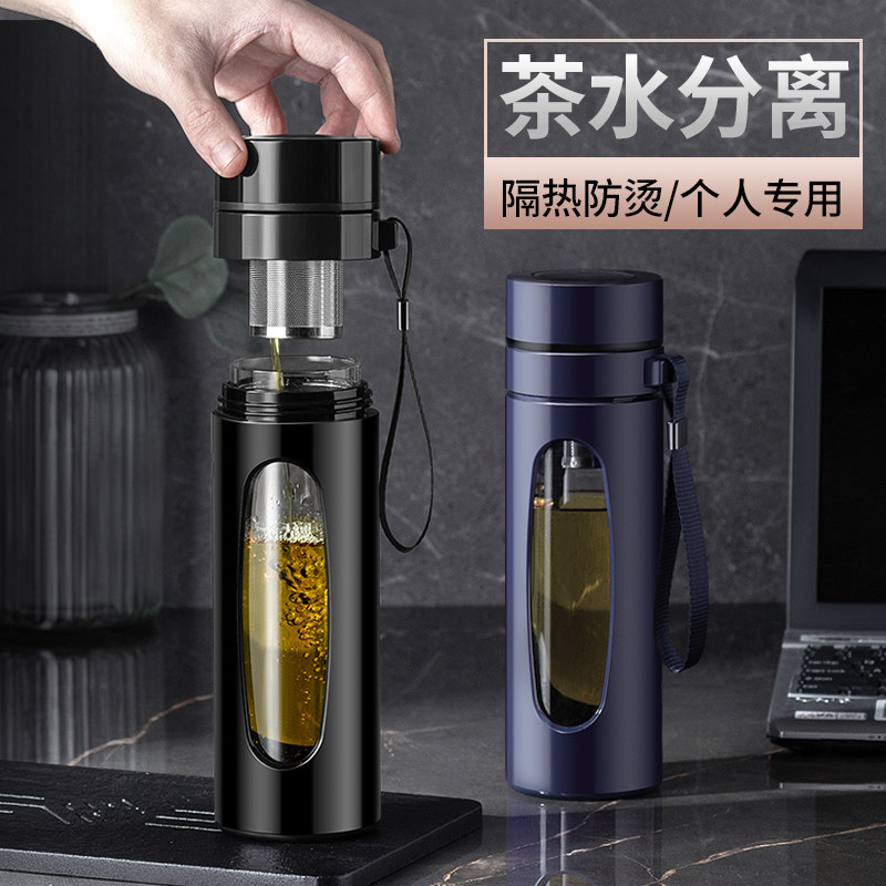 Tea water separation tea cup Personal special double-layer glass high-grade water cup men's portable cup custom logo