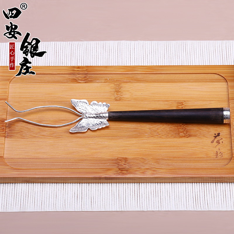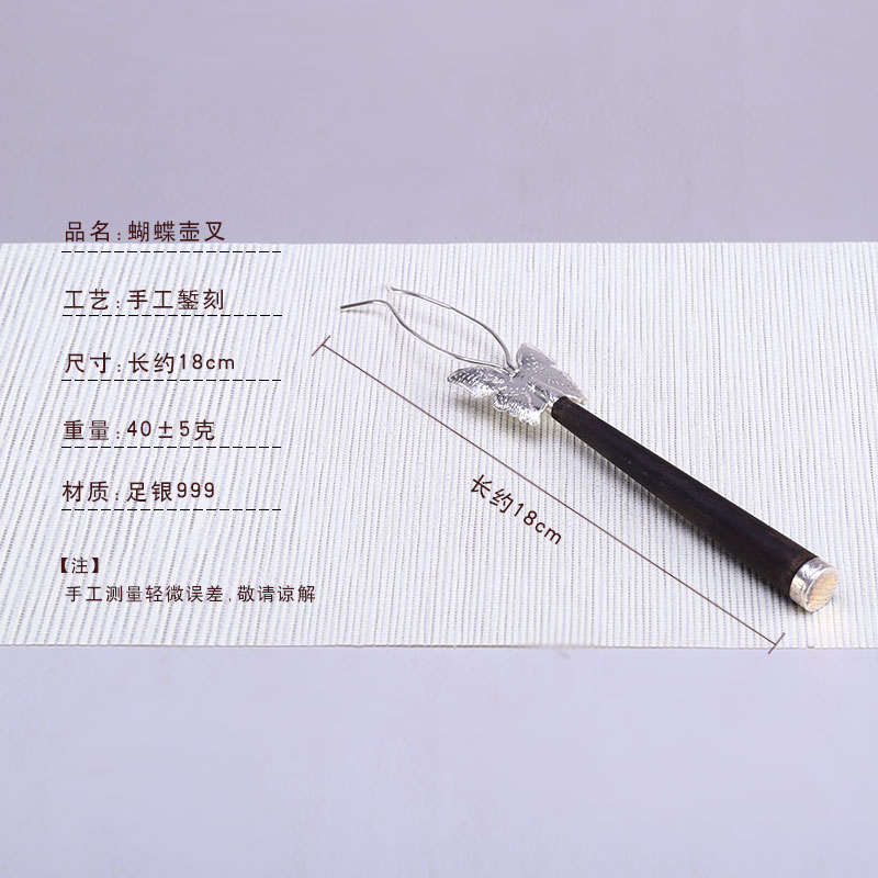 Silver Kettle Butterfly and Silver Fork Handicrafts Silver Tea Toy Creative Kung Fu Tea Clothing Accessories Household Silver Zhuang