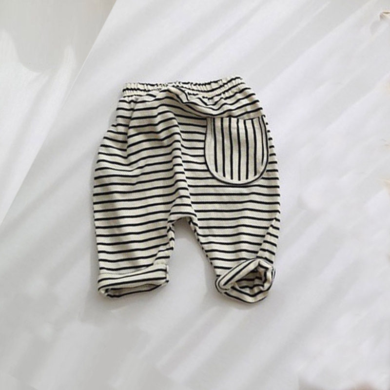 Korean version of spring and autumn clothes infants and young children striped trousers pure cotton leggings male and female baby big PP pants go out to wear pants pants