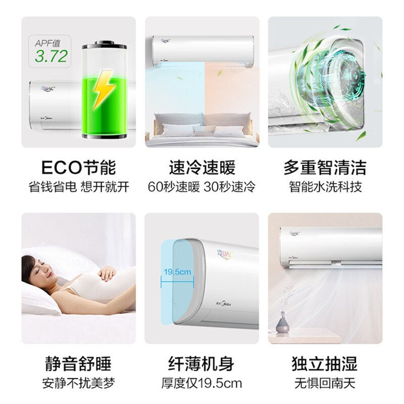 Midea 3P frequency conversion air conditioner wall-mounted home commercial living room intelligent heating and cooling dual-use hanging type official website