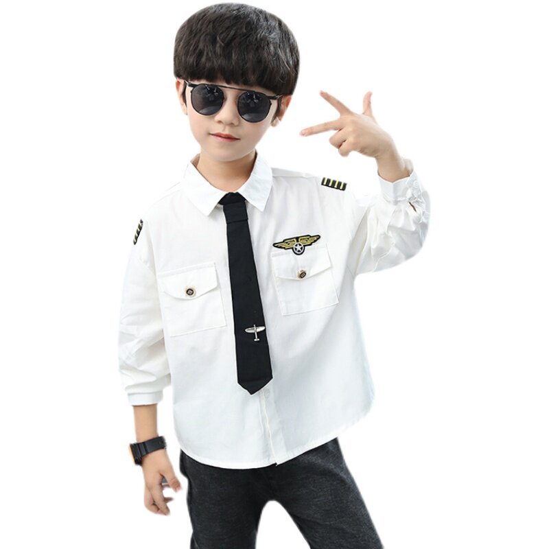 Boys' white shirts spring 2022 autumn new cotton middle-aged children's spring and autumn shirts coat children's tops trend