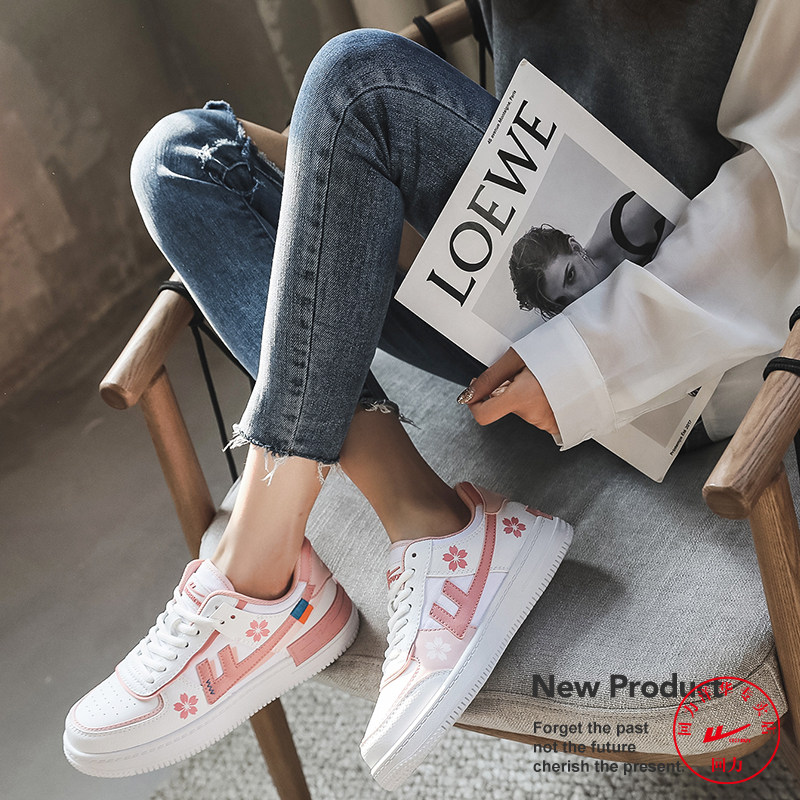 Pull back explosively changed women's shoes ow joint name cherry blossom low top couple sports sneakers all-match breathable student Japanese white shoes
