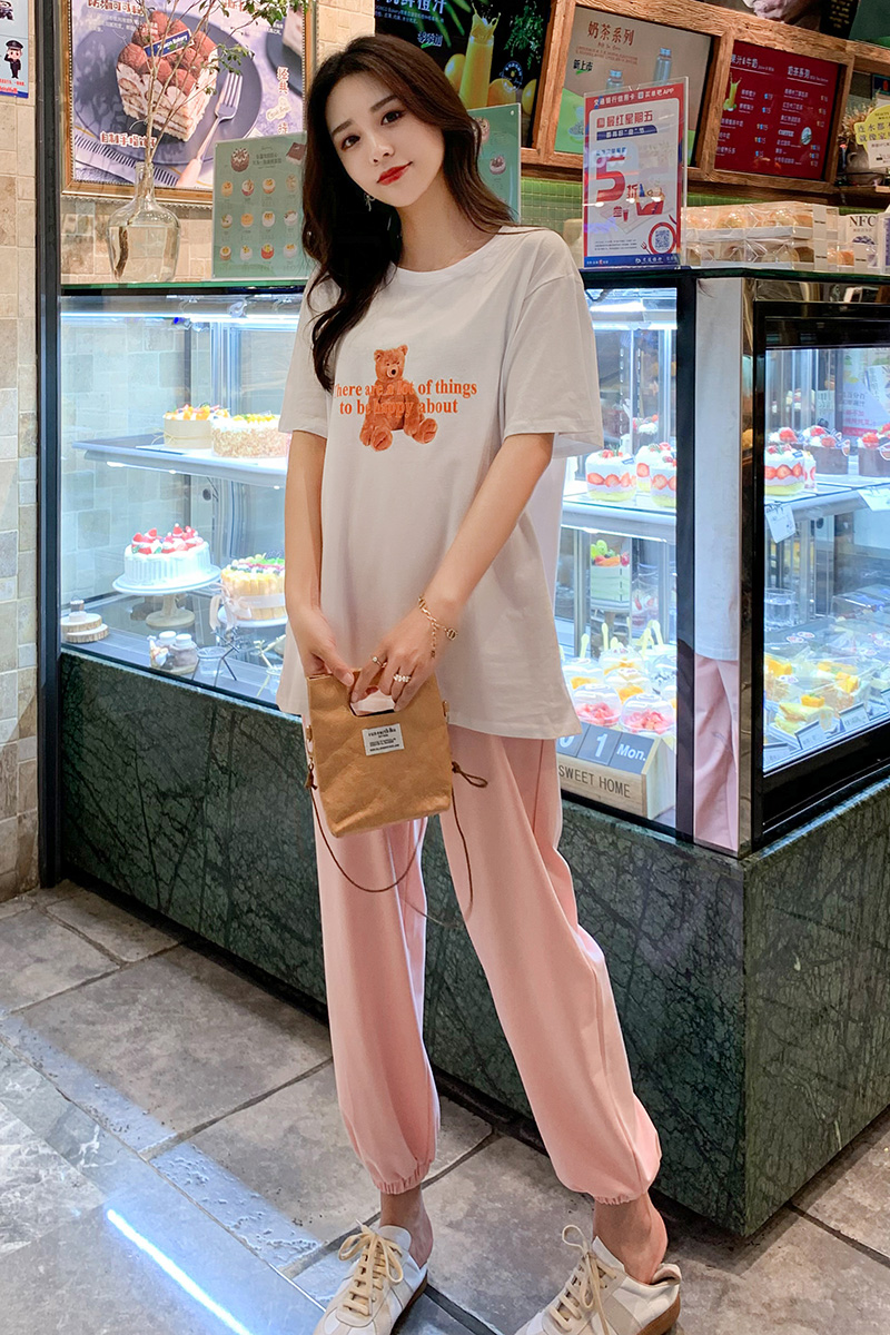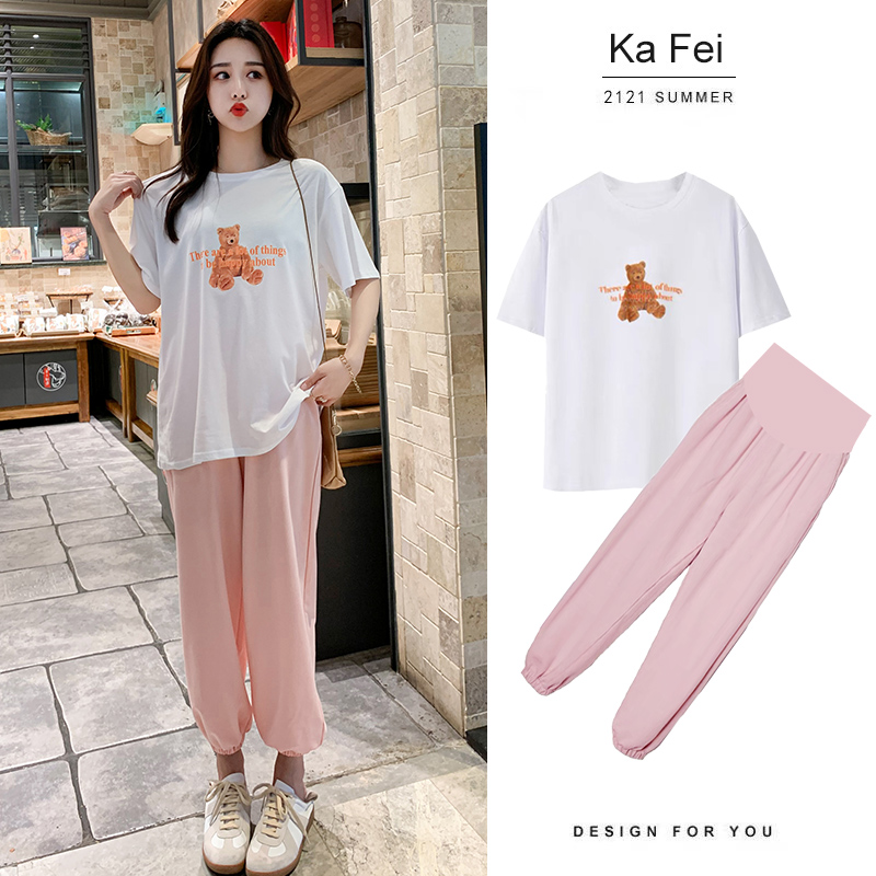 Small maternity suit summer net infrared wear sports casual short-sleeved T-shirt fashion belly pants two-piece set