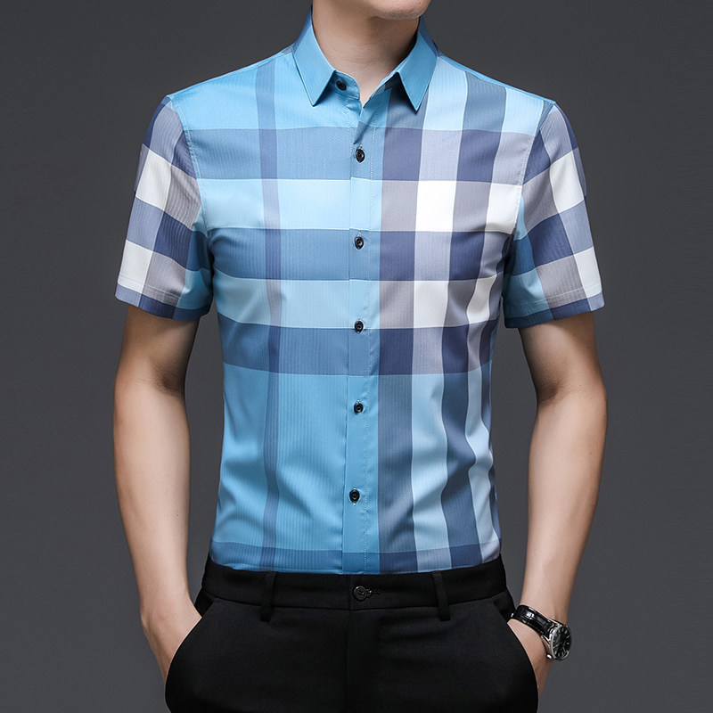 Striped shirts men's short sleeve tide trend diminished summer 2021 new grid cloth business leisure men's shirt