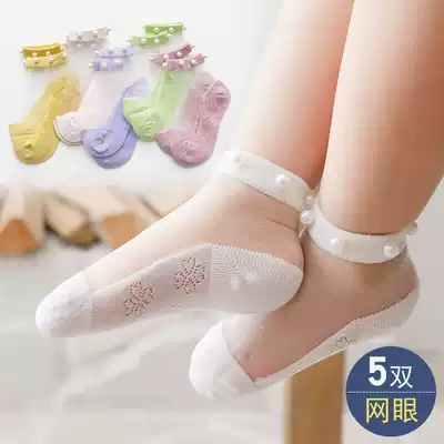 Girls socks summer thin lace Crystal Princess invisible socks mesh baby cotton Ice Silk socks breathable boneless