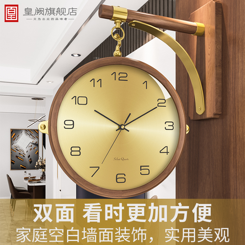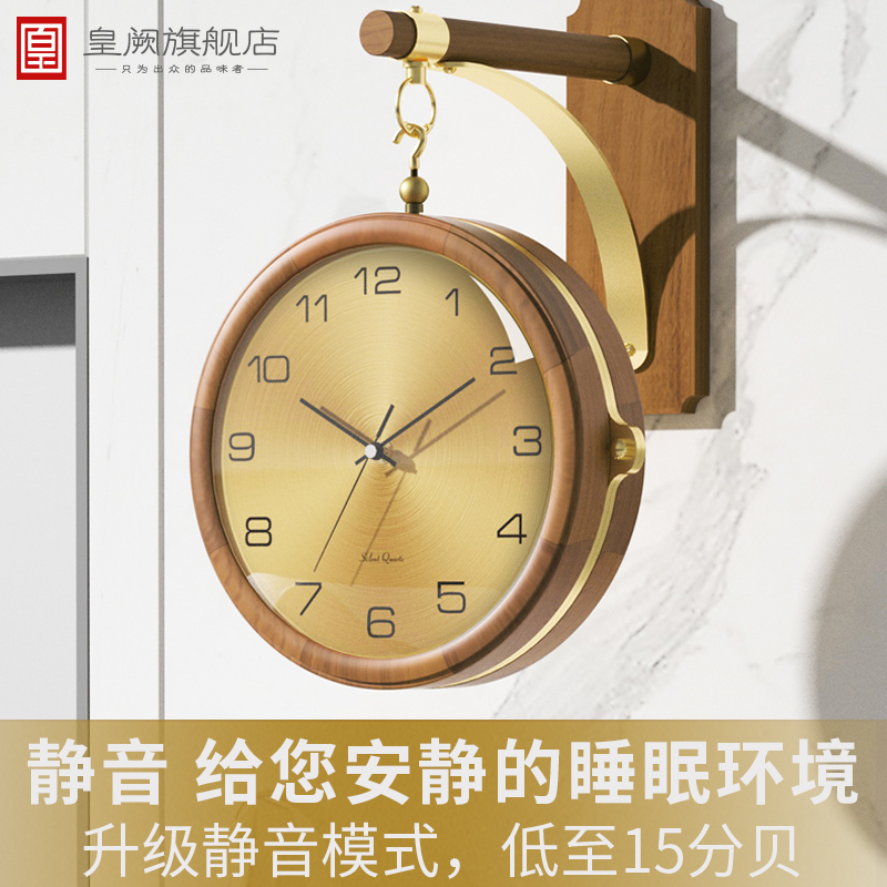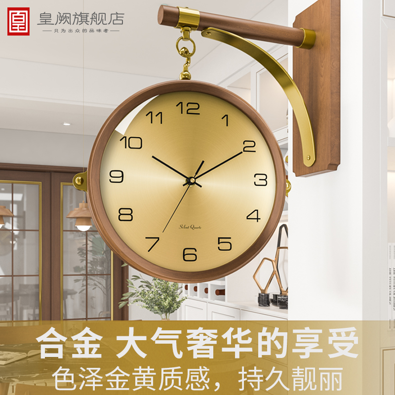 Noble gold double-sided clock-solid wood material with brass decoration Rich gold double-sided clock-solid wood material metal decoration Jazz white double-sided clock-high-quality wood metal decoration