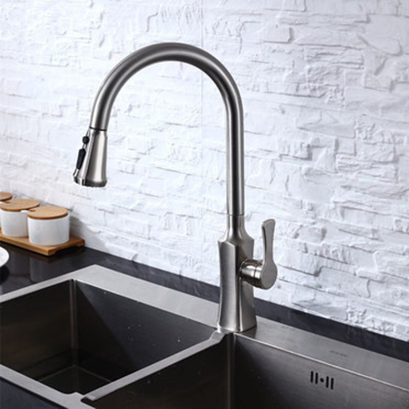 Pull-pull kitchen faucet cold and hot sink washing basin pumped with pressurized splash-proof faucet