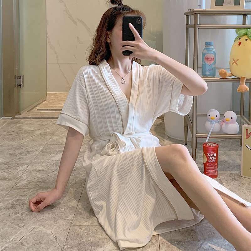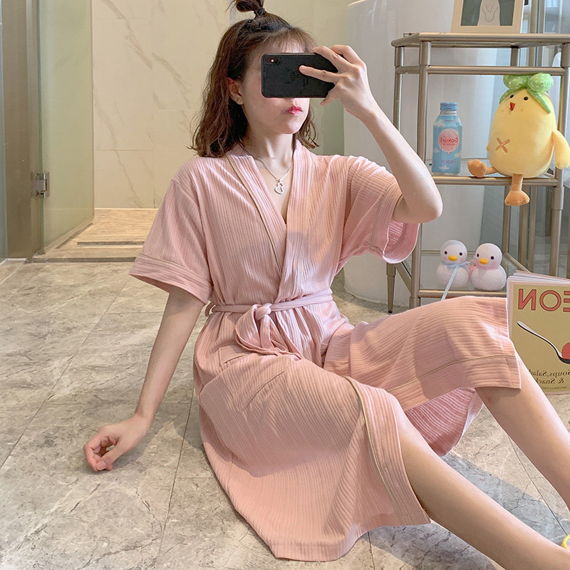 Kimono dressing gown women's summer pajama nightdress 2022 new short-sleeved cotton spring bathrobe plus size spring and autumn loungewear