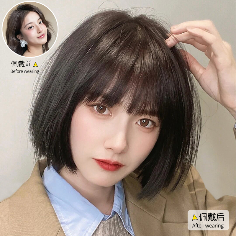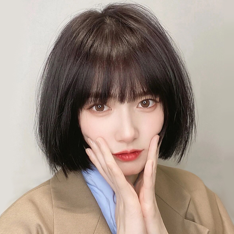Wig women's short hair natural full hood simulation human hair 2021 new net red wave wave head long hair wig