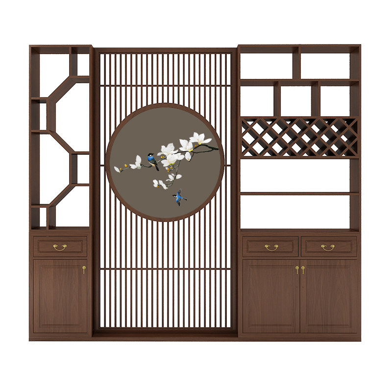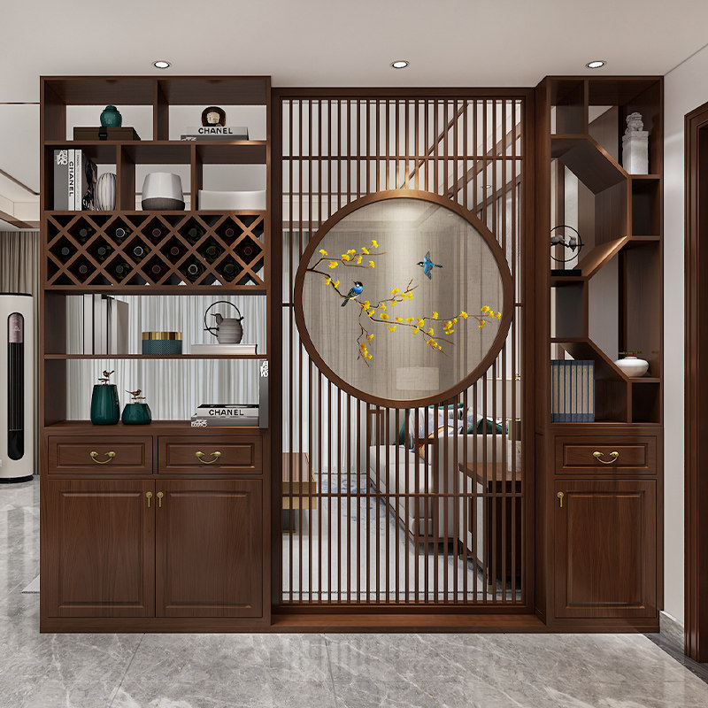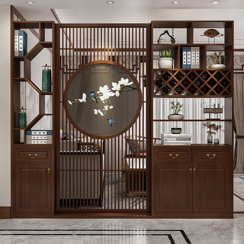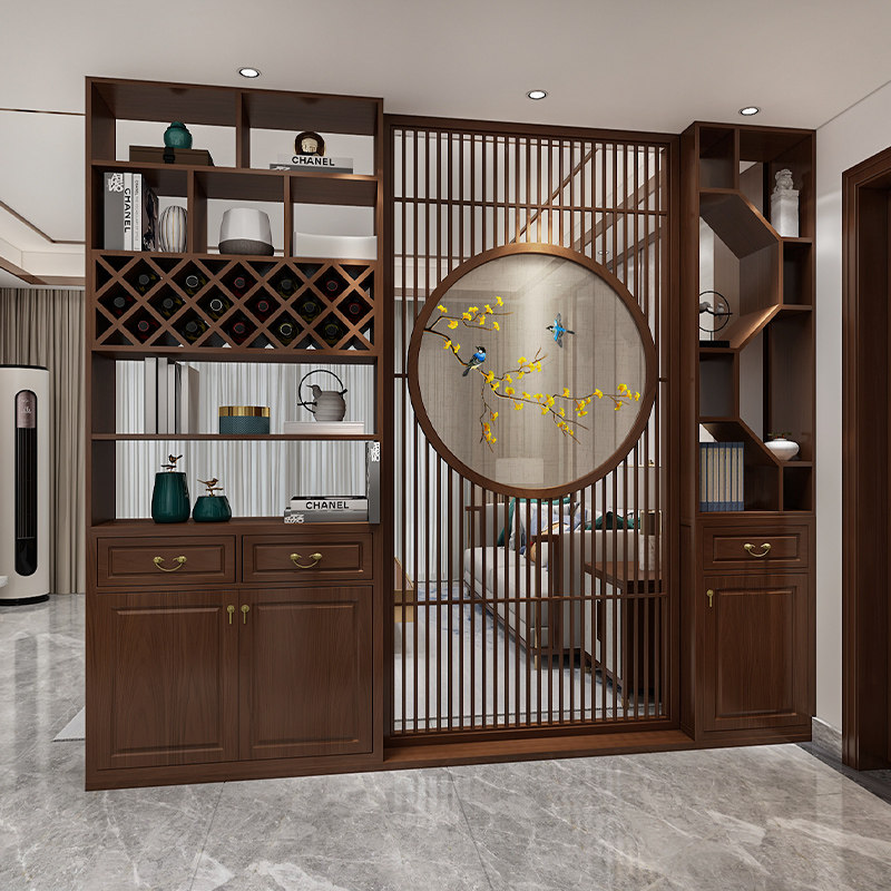 New Chinese style entry porch cabinet entry door embroidery screen solid wood living room compartment foyer dining room wine cabinet integrated cabinet