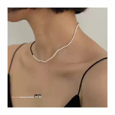 Night White original minimalist splicing curve natural black agate freshwater pearl