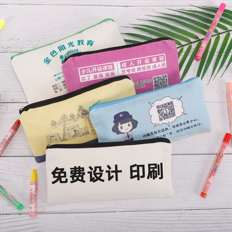 Pencil bag custom canvas bag printing large-capacity pattern student training education urgent gift stationery bag custom