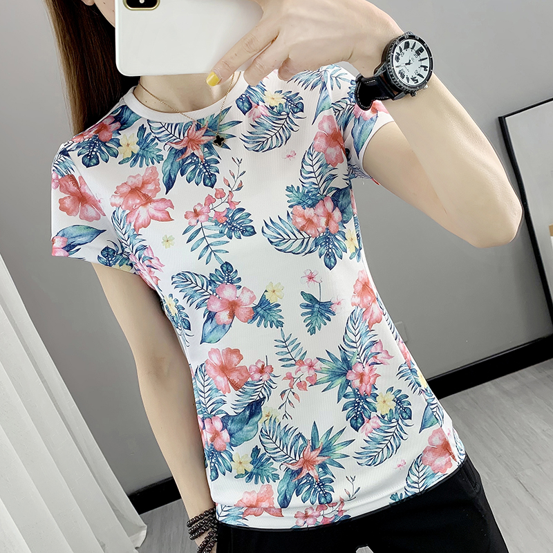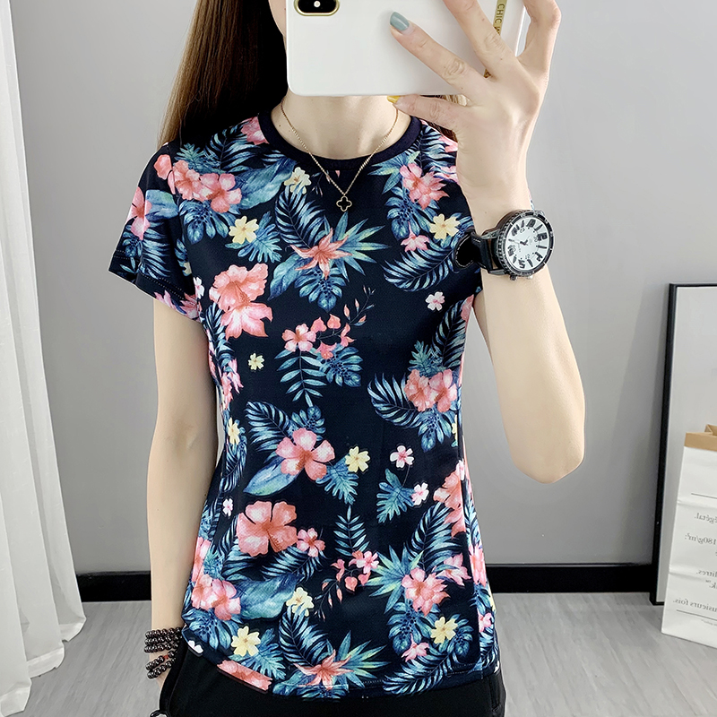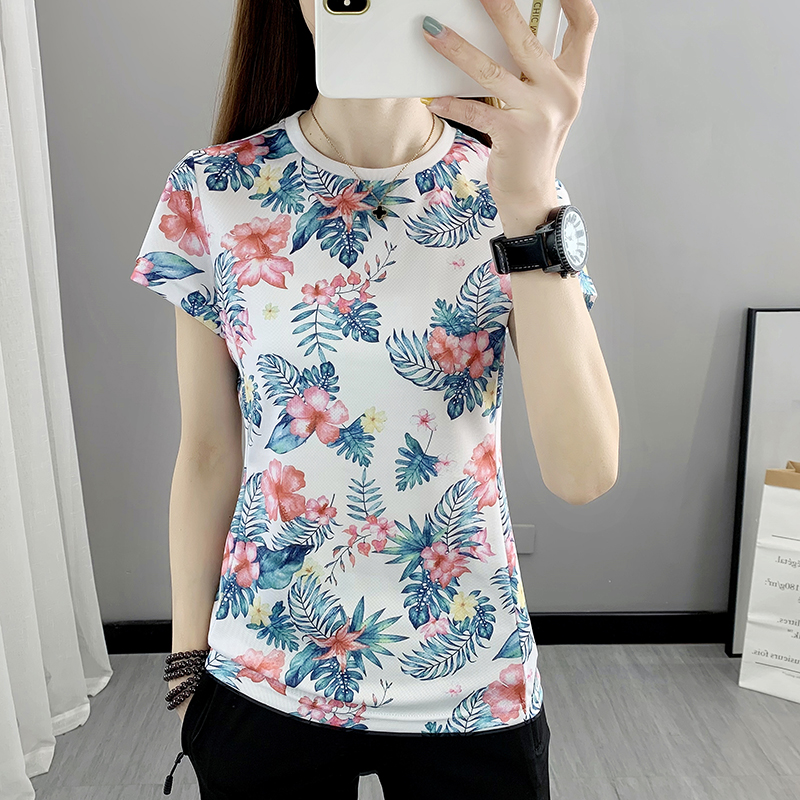Speed Jersey Lady Short Sleeve Round Collar Elastic Breathable Outdoor Repair Body Thin Quick Dry T-shirt China Wind Printed Blouse