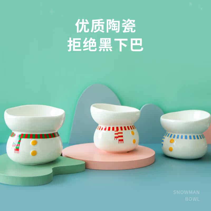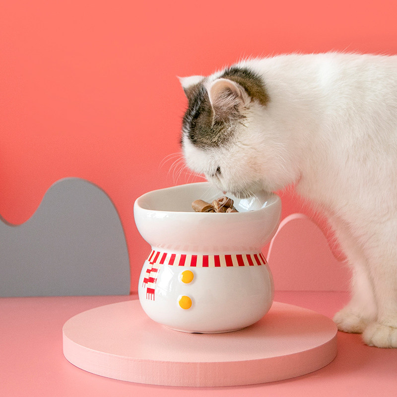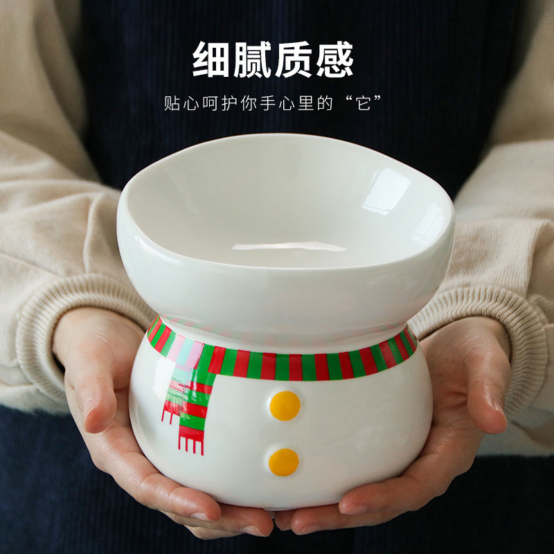 Ceramic cat bowl anti-overturning cat food basin protection cervical spine dog food bowl without black chin kitty drinking water basin pet supplies