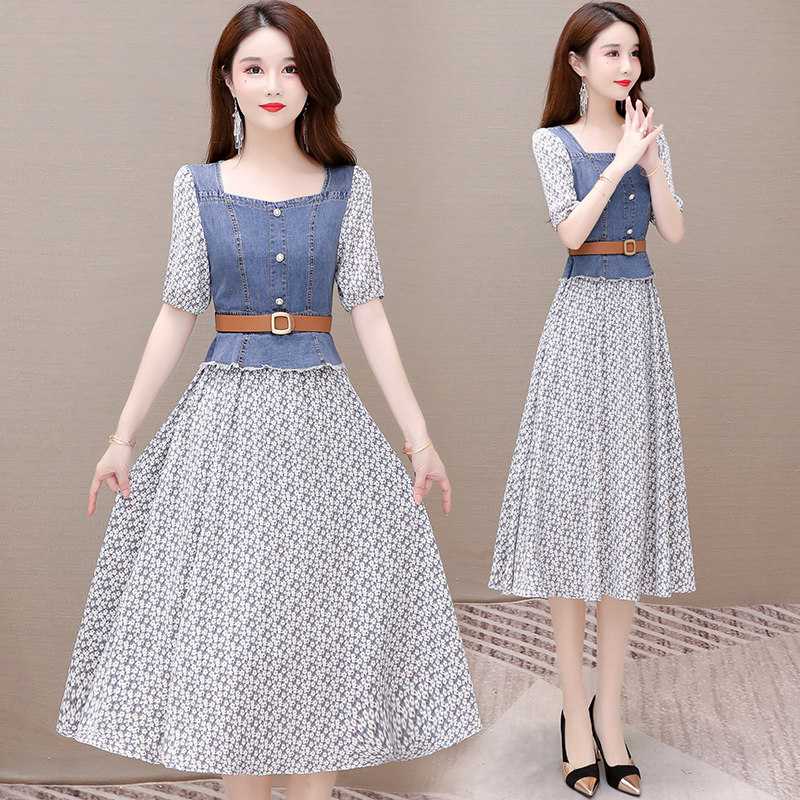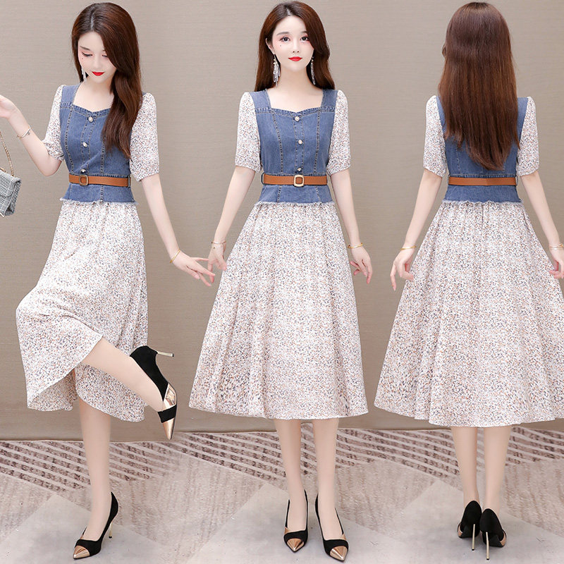Floral dress suit summer women's 2021 new style slimming age-reducing denim jacket skirt one-piece two-piece suit