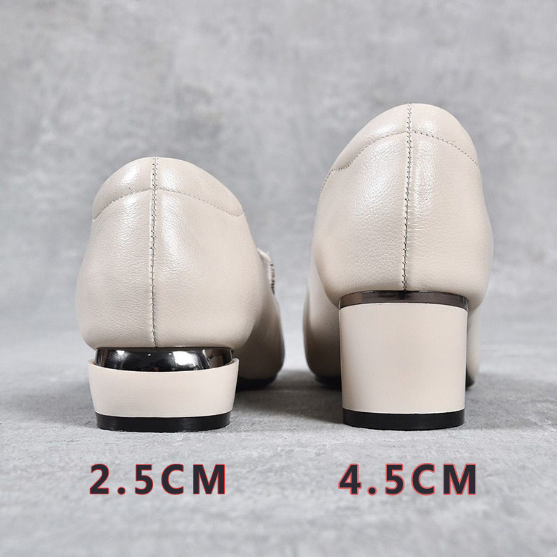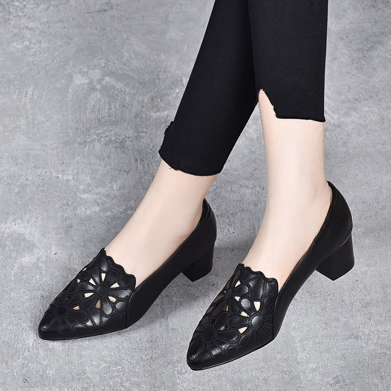 Leather hollow shoes women's 2022 spring and summer new high-heeled shoes low-heeled small leather shoes thick heel slip-on women's shoes