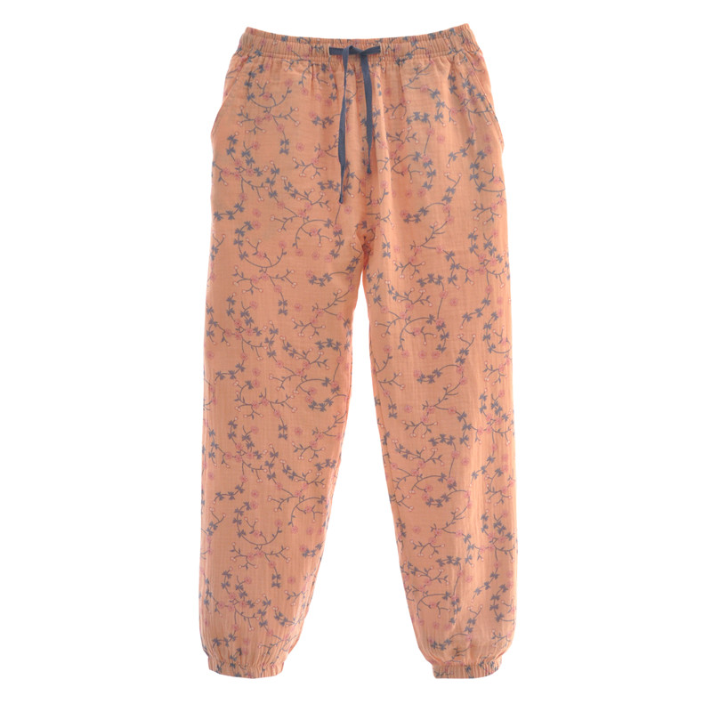 Spring Summer Full Cotton Ultra Soft Double Cotton Cotton Cloth Women's Style Slim Tie Rope Close-up Sleeping Pants Mosquito-Proof Long Pants Casual Home Pants