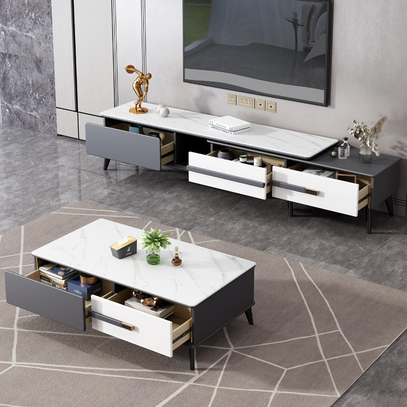 Light extravagant imported rock plate tea table TV cabinet Composition modern minimalist small family type Living room Italian style telescopic TV cabinet