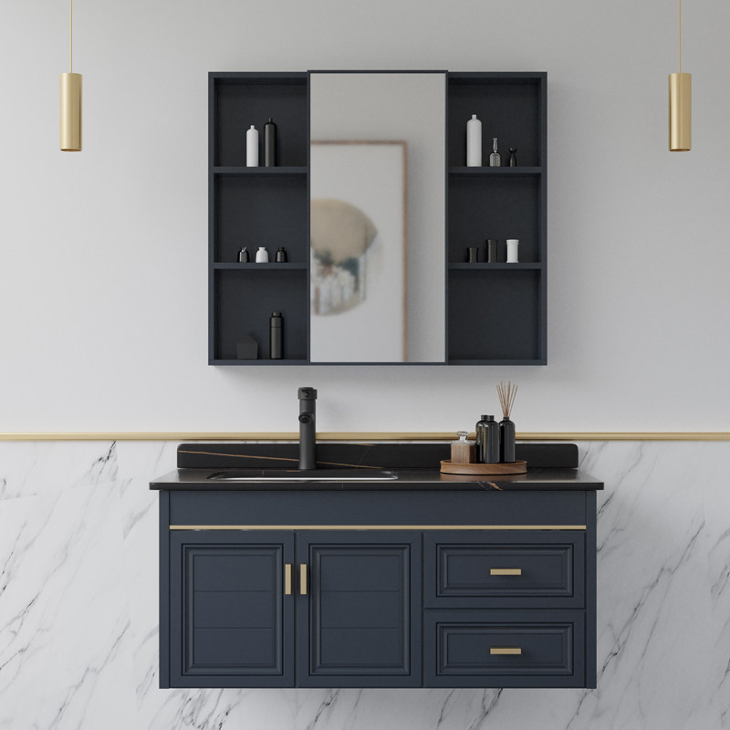 Space aluminum bathroom cabinet rock plate light luxury wind toilet toilet washroom wash basin cabinet combination