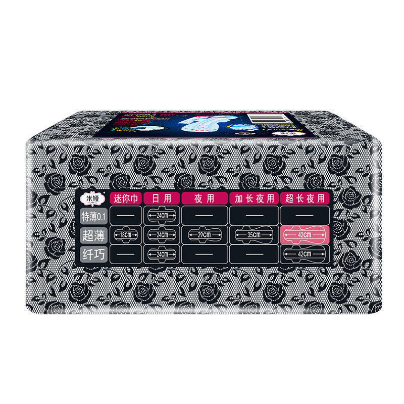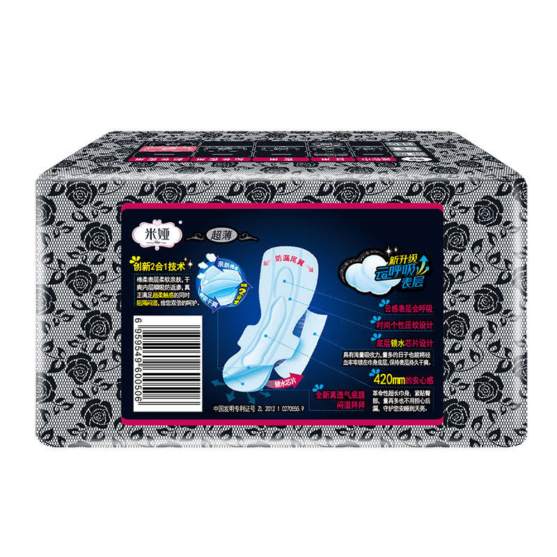 6 Pack 48 slices of Mia black rice ultra-thin sanitary cotton 42cm Night dosage Big cotton dry Aunt Towel Lengthened Physiological Period