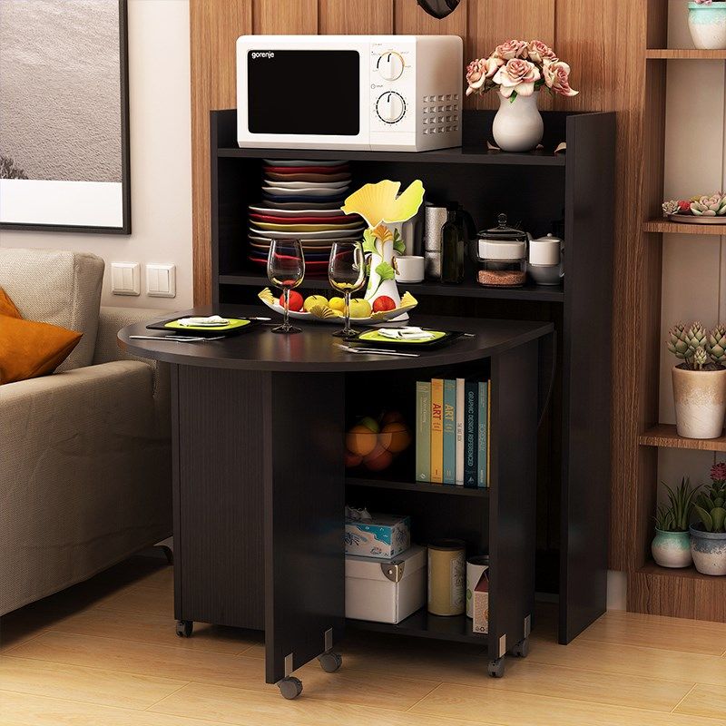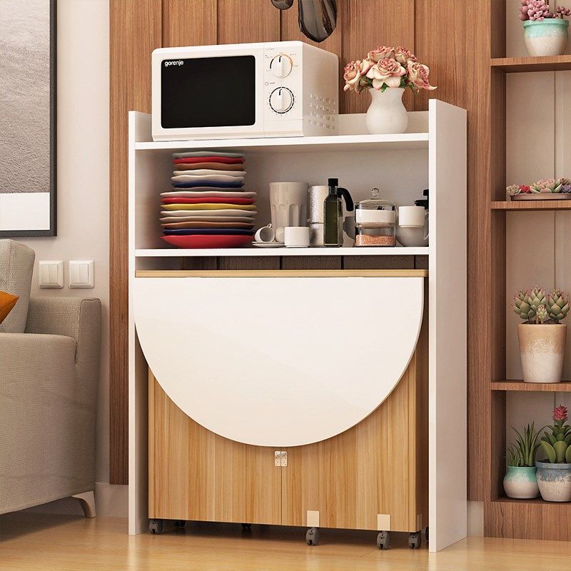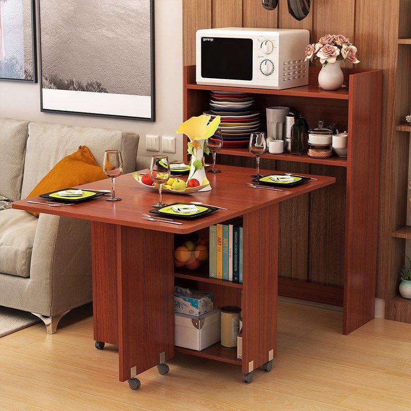 Simple mobile combination household small apartment folding mobile table 4 people 6 people dining table combination side cabinet dining table