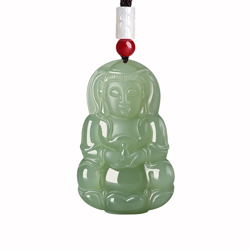 Jade Buddha pendant-cyan - (back-concave) Guanyin pendant-cyan - (back-concave)