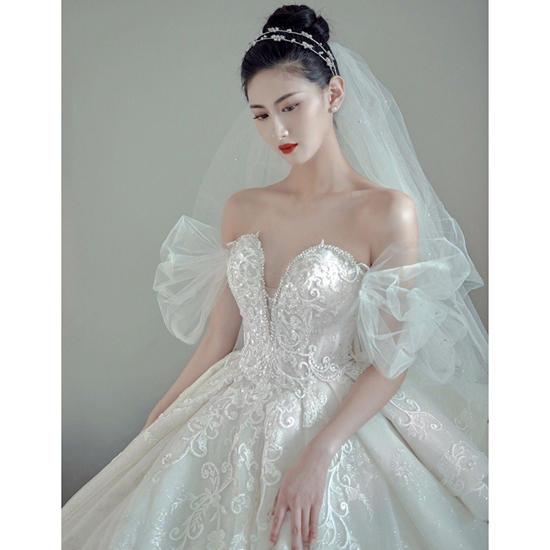 2023 New Bride French - style V - tailed wedding dress light luxury high - end outdoor dress