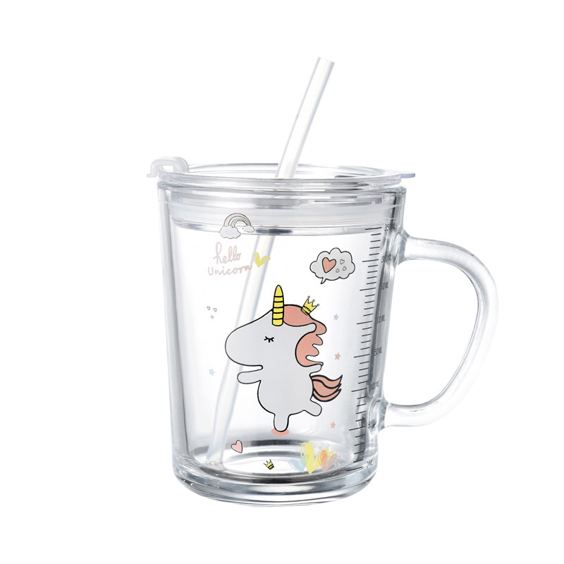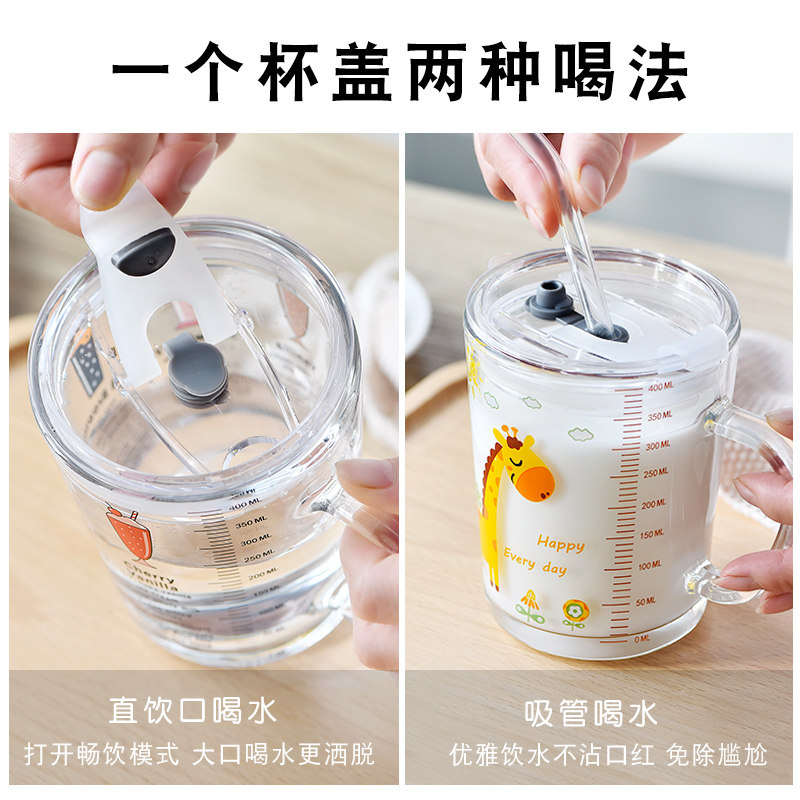 Stroke glass household children's water cup with cover milk cup children in summer lovely drink water cup tape