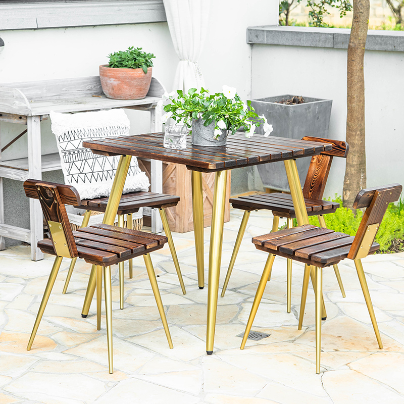 Balcony outdoor table and chairs Combined indoor Outer iron art solid wood small tea table Leisure patio terrace net red table and chairs combination