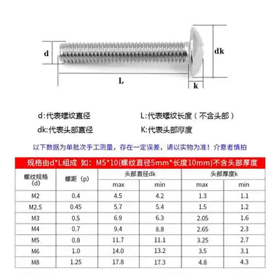 M3M4M5 304 stainless steel large flat head machine wire nut combination set flat round head big round head screw M6M8