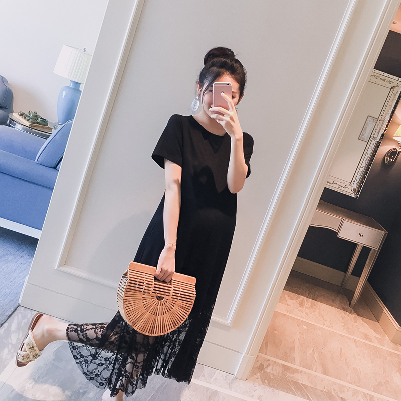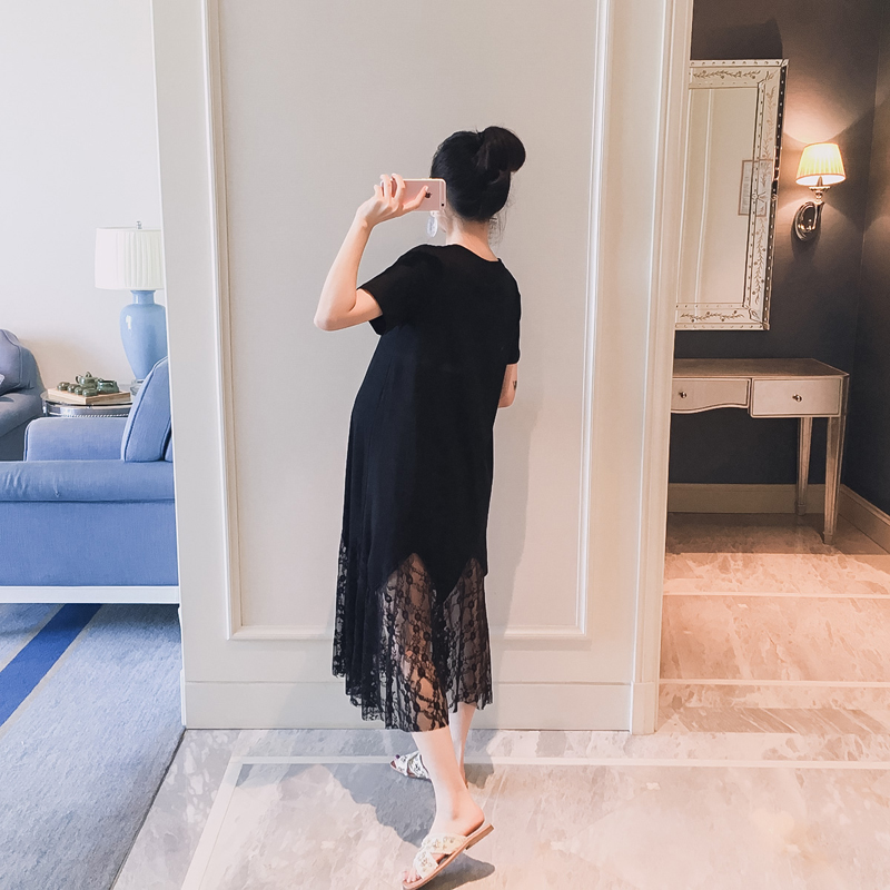 Maternity dress summer 2021 new fashion large size loose long section over the knee thin lace summer skirt tide