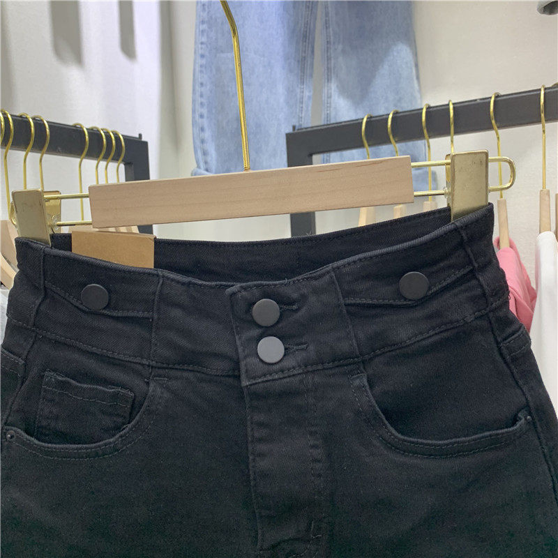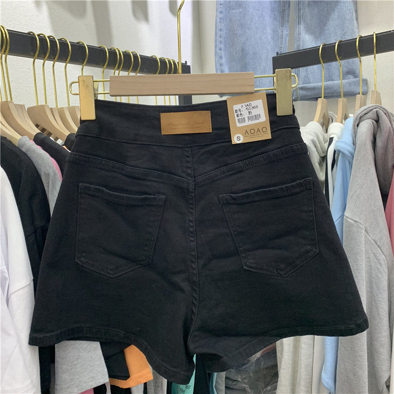 AOAO5288 denim shorts women's autumn new products all-match thin high-waisted slim stretch a-word black wide pants