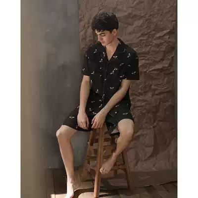 Couple pajamas women's summer cotton thin short-sleeved home wear men's summer cotton casual two-piece