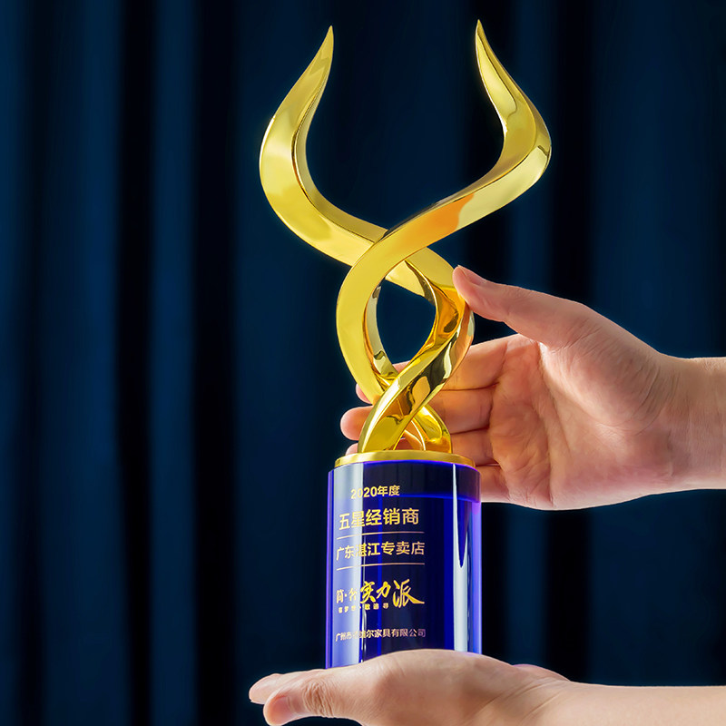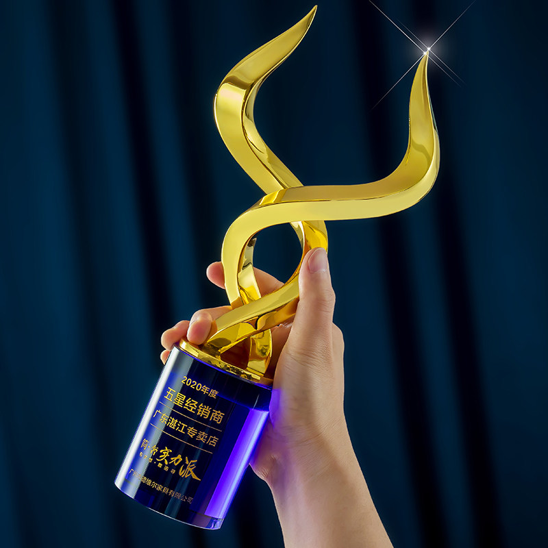 New Metal Horn Creative Trophies Customize High-end Atmosphere Crystal Memorabilia Trophy for free lettering-Taobao